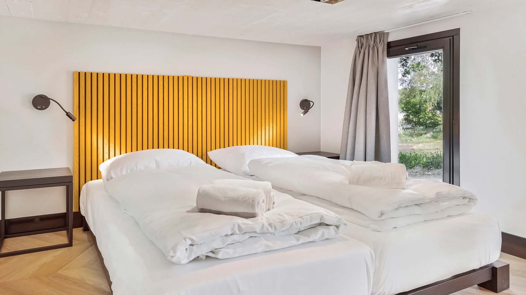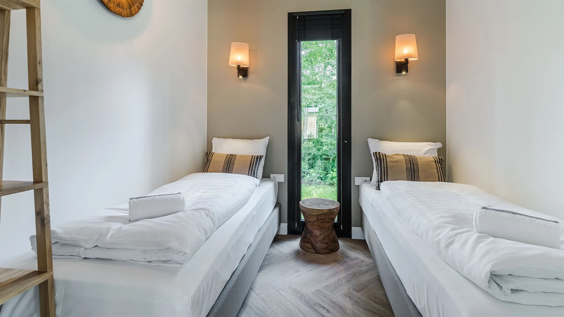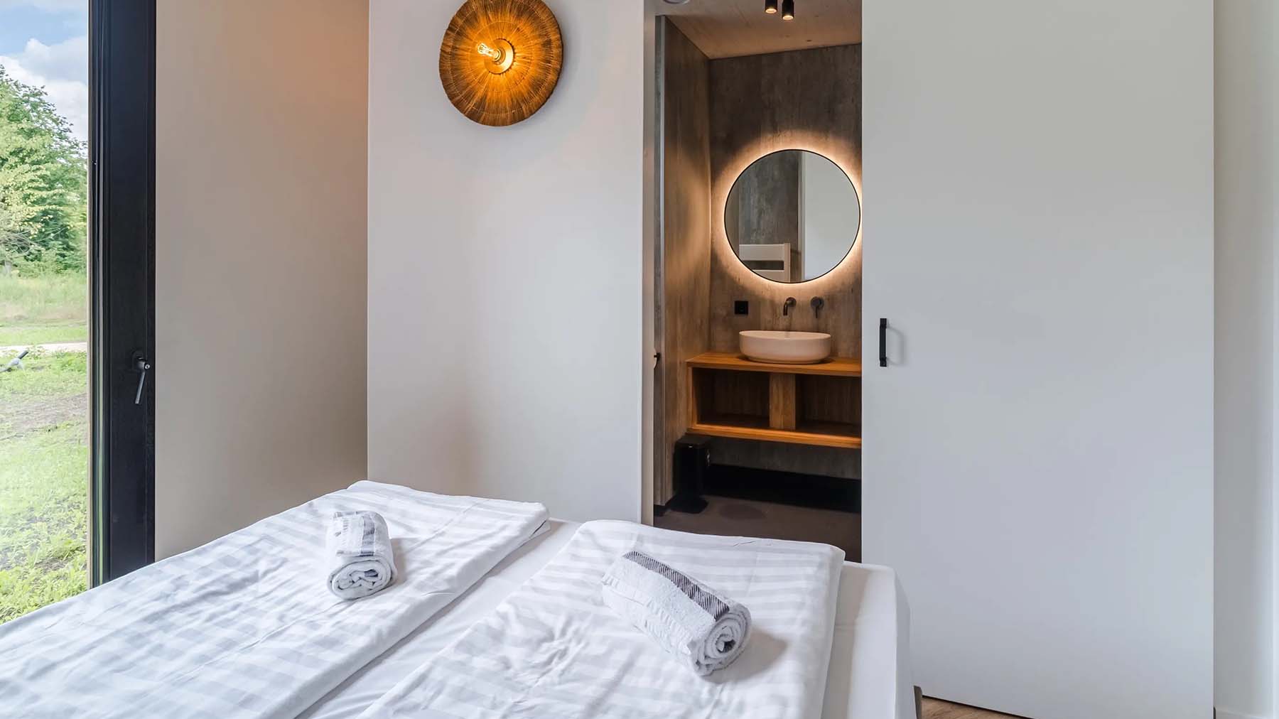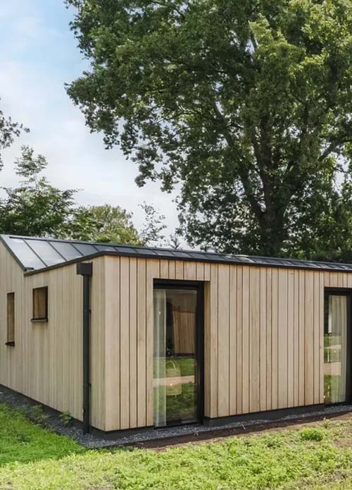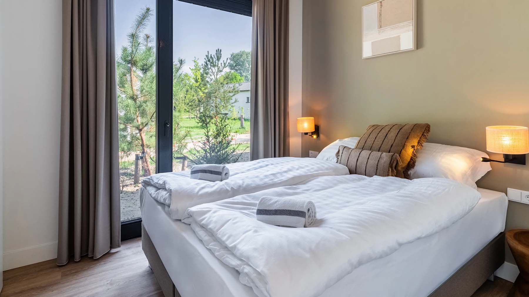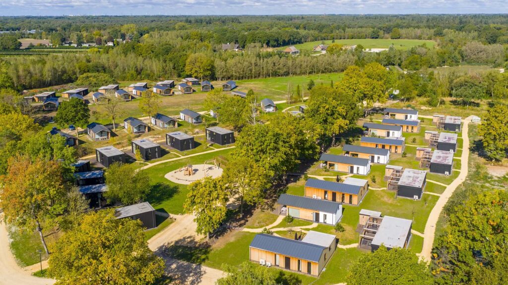Overdag kei hard feesten en in de nacht uitrusten in luxe ingerichte lodges die blenden met de natuurlijke omgeving, slechts 10 minuten van het festivalterrein.